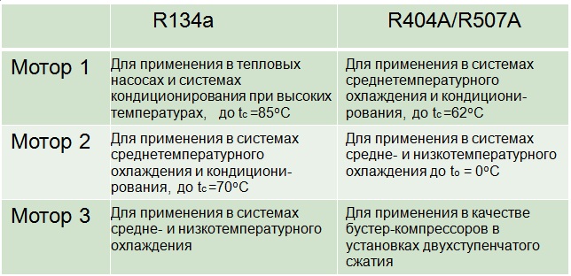 Компрессоры с мотором 3 предназначены для умеренно низкотемпературных систем, ставших в последние годы довольно распространёнными в коммерческом холоде в странах Евросоюза.